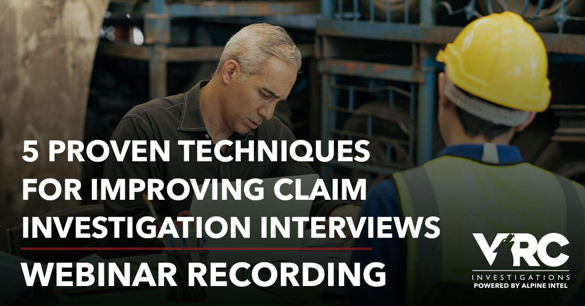 VRC Investigations Vice President of SIU Compliance and CE Programs Curtis Whitfill, CFE, CIFI, shares tips on how to improve interviewing skills to obtain the most accurate information during claim investigations. He’ll cover active listening and nonverbal communication, identifying deception and evasion, and building rapport with interviewees. Watch the Recording