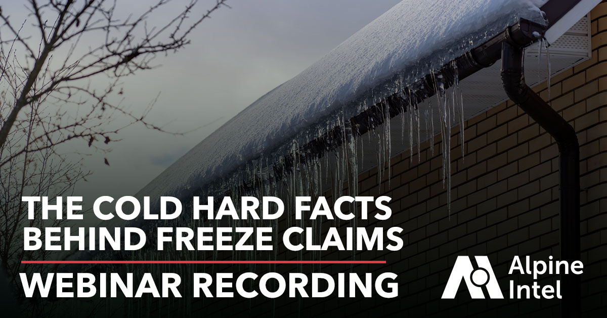 Understand freeze mechanics, identify risk factors, and enhance your skills in handling freeze-related claims with this webinar presented by Alpine Intel Technical Education Trainer Kevin Huelsman. Topics include residential plumbing, building materials, and determining damage scope. Watch the Recording